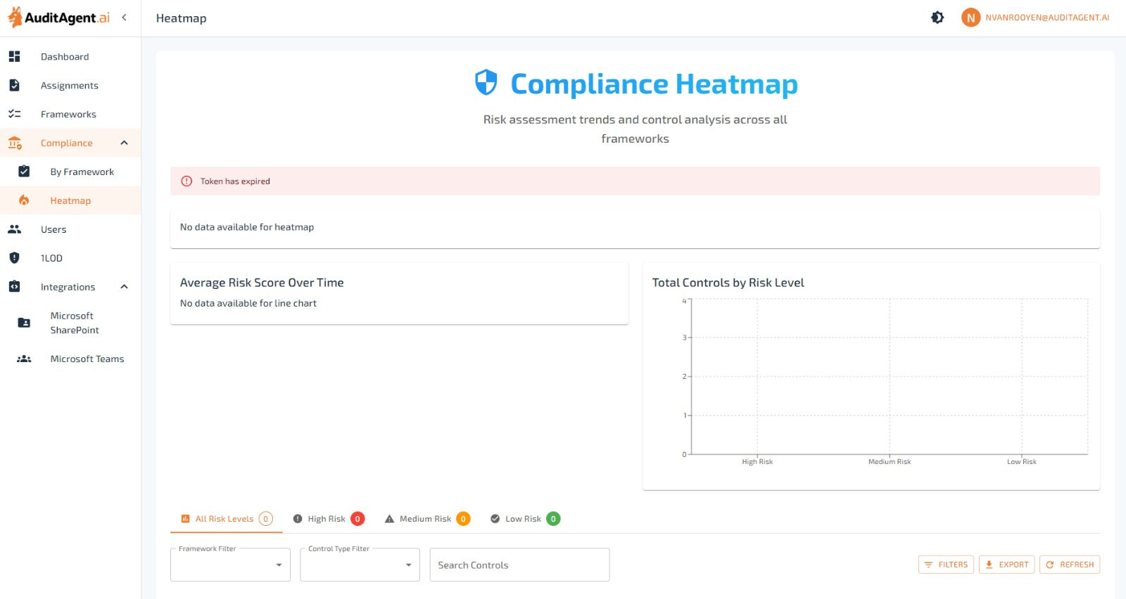 See all risk levels and control performance at a glance.The Compliance Heatmap gives your team instant visibility across all frameworks, helping you spot issues early and prioritize what matters most.
