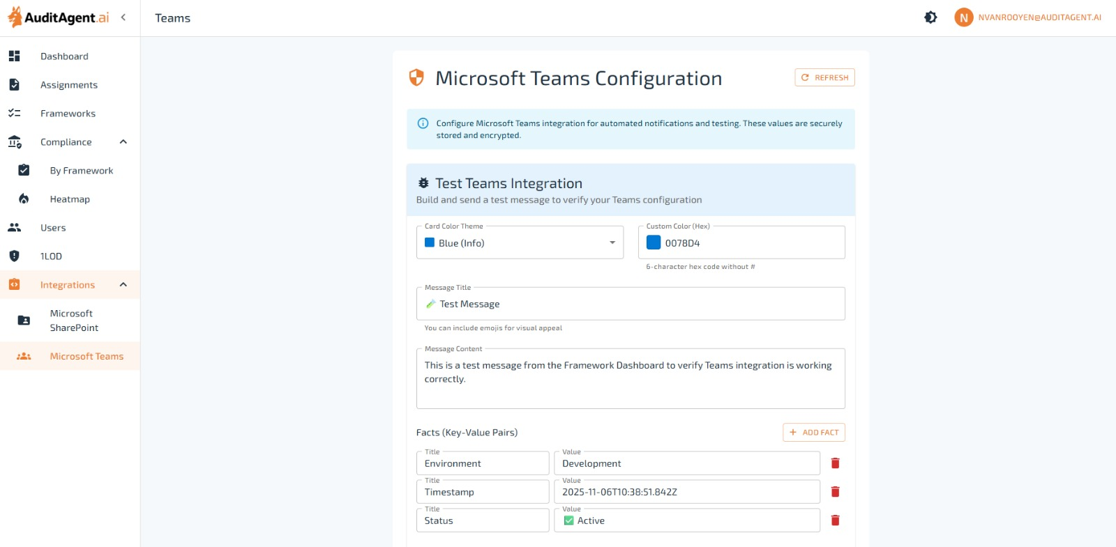Connect Microsoft Teams to your AuditAgent dashboard in just a few steps.AuditAgent helps you keep everyone aligned in real time, without email follow-ups or manual check-ins.
